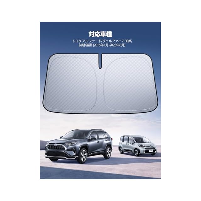 <p>【6層断熱素材】 Lamicall 車種専用 フロントガラス サンシェード: 車サンシェード 日除け 車 クルマ フロントサンシェード, 車用 フロントガラス サンシェード 折り畳み式 カーシェード 断熱 カー用品 遮光 遮熱 uvカット 紫外線遮蔽 フロントサンシェード さんしえーど 擦り傷防止 断熱素材 暑さ対策 頑丈 収納ポーチ付き</P> <p><b>【適合車種】車種専用フロントガラスサンシェード 。車種や形状をご確認いただいた上、お買い求めください。</P> <p><b>【猛暑対策・内装保護】内装劣化防止、ダメージや経年劣化を防ぎます。駐車時の大事な車を太陽光による損傷やハンドル焼け、ダッシュボードなどの樹脂部分の日焼けからしっかりご愛車を守ります。駐車の度に気持ちをより涼しくしてくれます。</P> <p><b>【高品質6層構造・遮光断熱】夏には、紫外線を防ぎ、車内の温度を下げることを目指します。フロントサンシェードにより、紫外線に対するバリアを作ります。約98%以上の紫外線を効果的に遮断しますので、外気温が上昇しても、駐車中の車内を涼しく保ち、ひどい暑さを防げます。蒸し暑い車の環境に悩まされることはなくなります。 </P> <p><b>【簡単装着・収納可能】構造簡単で、吸盤を使わず、誰でも簡単に取り付ける可能です。本体を広げて下部をフロントガラスに押し当て、サンバイザーを下げて固定するだけで装着完成。また、収納袋があります。折り畳みでコンパクトに収納可能です。場所を取らない。</P> <p><b>【幅広い用途】普段駐車時の日除け用だけでなく、車中泊や仮眠時にプライバシーの保護に役に立てます。</P>車アルファード30系用フロントガラスサンシェード 車ひよけ フロントサンバイザーアルファード30系