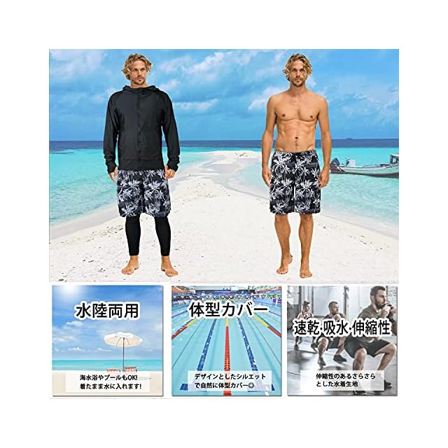 商品名:[ARMOTO] ラッシュガード メンズ 水着 長袖 パーカー レギンス サーフパンツ フィットネス [UVカット UPF50+・吸汗速乾] 水泳 水陸両用 大きいサイズ