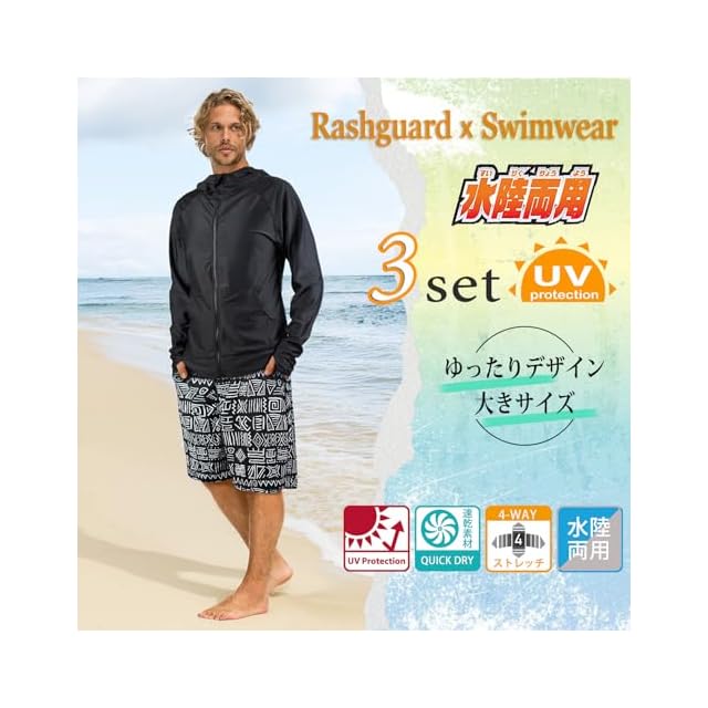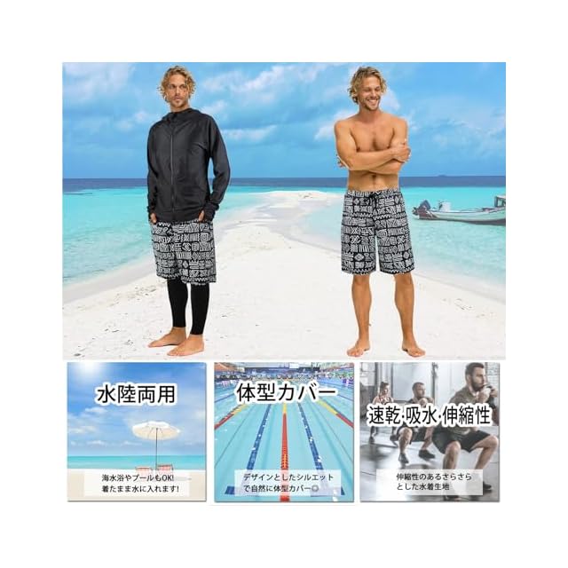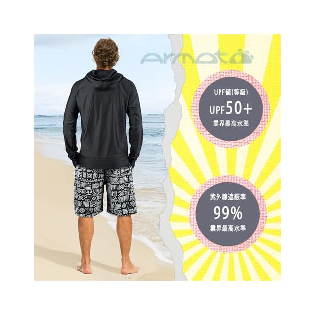 商品名:【ARMOTO】 ラッシュガード メンズ 水着 長袖 パーカー レギンス サーフパンツ フィットネス [UVカット UPF50+・吸汗速乾] 水泳 水陸両用 大きいサイズ