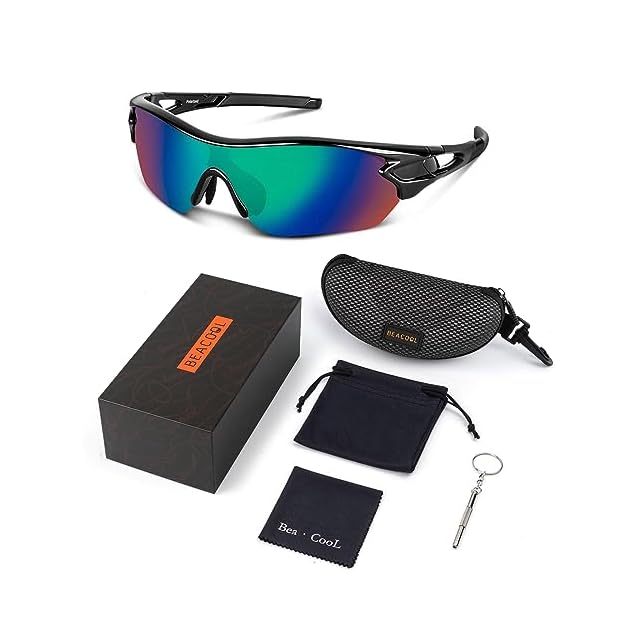 .BEACOOL - Worth your try and trust.✓Beacool sunglasses will protect your precious eyes.✓Ideal for all men, women and those with sensitive or dry eyes.✓Shield your eyes from harmful UV rays, wind, debris, dust, and even water.✓Reduce eyestrain, itchiness, redness, and eye discomfort with these sunglasses.1. Flexible materials make the frame best fit for any shape of faces.2. Protective gasket help you to avoid hurts from impacts.3. Super light weight frame suits your flexible movement..Package Includes:1 x Sports Polarized Sunglasses1 x Hard and exquisite protective case1 x Carrying zipper pouch1 x Cleaning soft cloth1 x Soft Microfiber pouch1 x Sunglasses screwdriverIt is also GIFT packaged already, making it a wonderful yet practical gift idea for your active friends and family!.NO RISK PURCHASE: 100% satisfaction guaranteed, that is our promise.So, if you're not completely happy with your purchase within the first 30 days, just let us know and we will reply you within 24 hours!.Precautions:➤Prolonged exposure to salt water not recommended due to the corrosive nature of saltwater.➤Don't use the finger to clean the lens directly, please use the cleaning cloth to wipe the lens.➤Don't watch the sun directly for a long time.➤Do not place the sunglasses in an environment higher than 60 degrees, Long time- the high temperature will cause the lens melting, film explosion, adhesive layer peeling. especially do not try to put polarized sunglasses in the car in the summer.