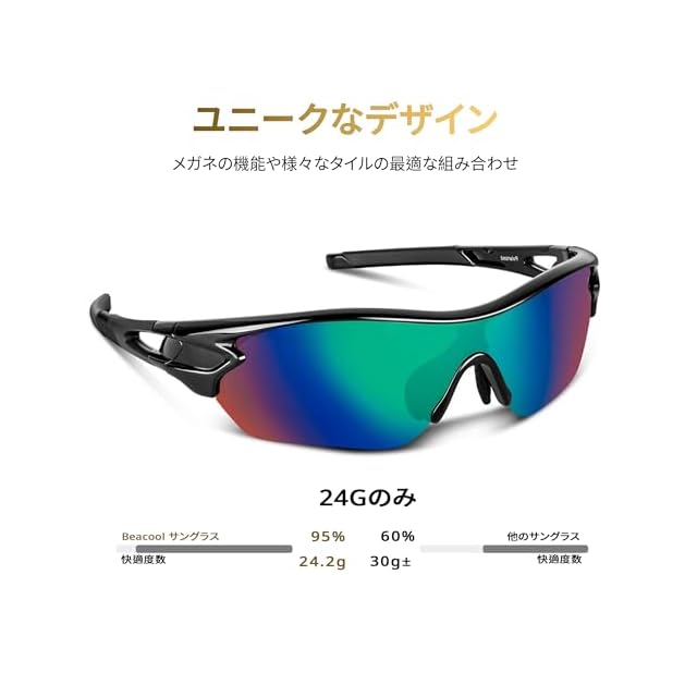 商品名:[BEACOOL] スポーツサングラス 偏光レンズ 自転車 登山 釣り 野球 ゴルフ ランニング ドライブ バイク テニス スキー 超軽量 UV400 TAC TR90 紫外線防止 メンズ レディース ユニセックス サングラス 安全 清晰