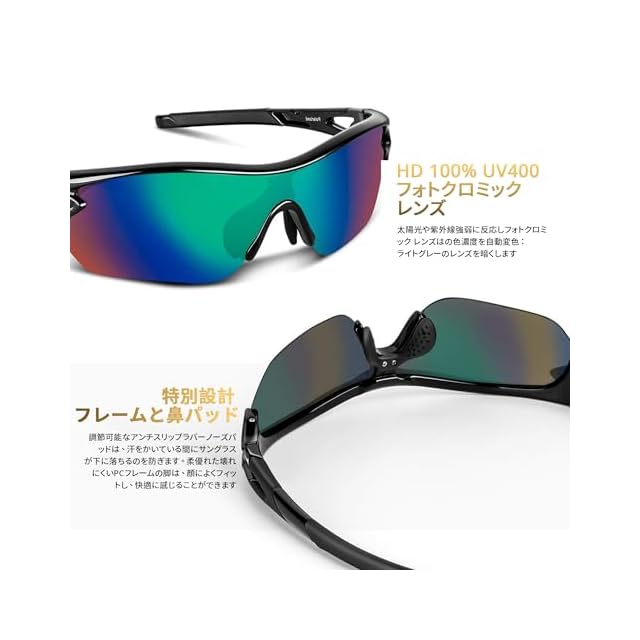 [BEACOOL] スポーツサングラス 偏光レンズ 自転車 登山 釣り 野球 ゴルフ ランニング ドライブ バイク テニス スキー 超軽量 UV400 TAC TR90 紫外線防止 メンズ レディース ユニセックス サングラス 安全 清晰 | Trend Design BASE店