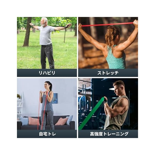 【優れる安全性】:天然ラテックス素材を使用し、肌触りがよくて滑りにくいです。耐久性に優れていて、かなり高強度の引っ張りに耐え、何度使ってもキレイに元どおりの形に戻ります。本商品はダンベル(鉄アレー)と違って落ちる危険性がなく、騒音の心配や、錆び、亀裂、床の変形の心配もなく、長時期使っても怪我のリスクが少なく、アスリートだけでなく子供からお年寄りまで幅広くトレーニングできます。