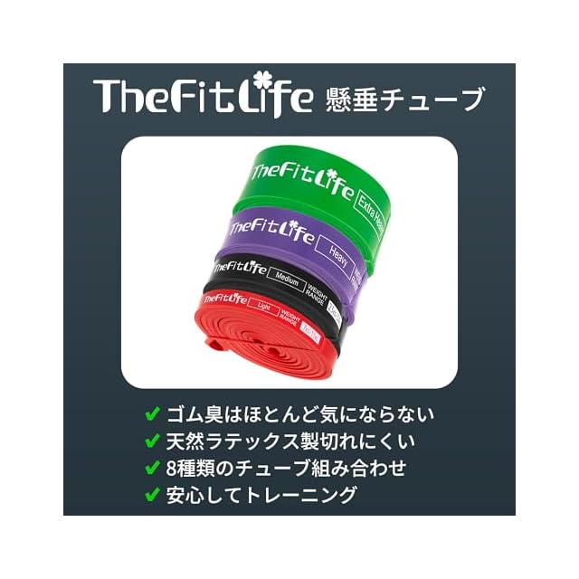 商品名:TheFitLife トレーニングチューブ 筋トレチューブ 懸垂チューブ (赤/黒/紫/緑)