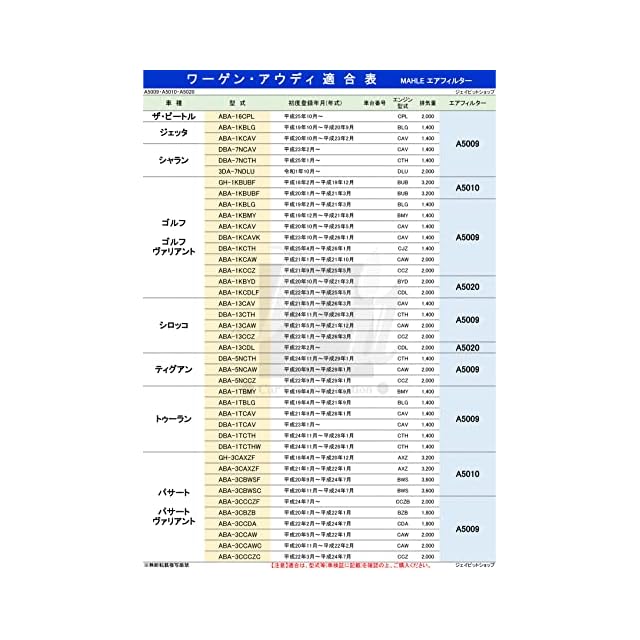 マーレ エアクリーナー エアフィルター ワーゲン アウディ CC ゴルフ5 ゴルフ6 ゴルフヴァリアント ティグアン トゥーラン ザ・ビートル ジェッタ シャラン シロッコ パサート パサートヴァリアント パサートCC A3 Q3 TT MAHLE A5009 ※型式の適合確認要 純正フィルターメーカー製 | Trend Design BASE店