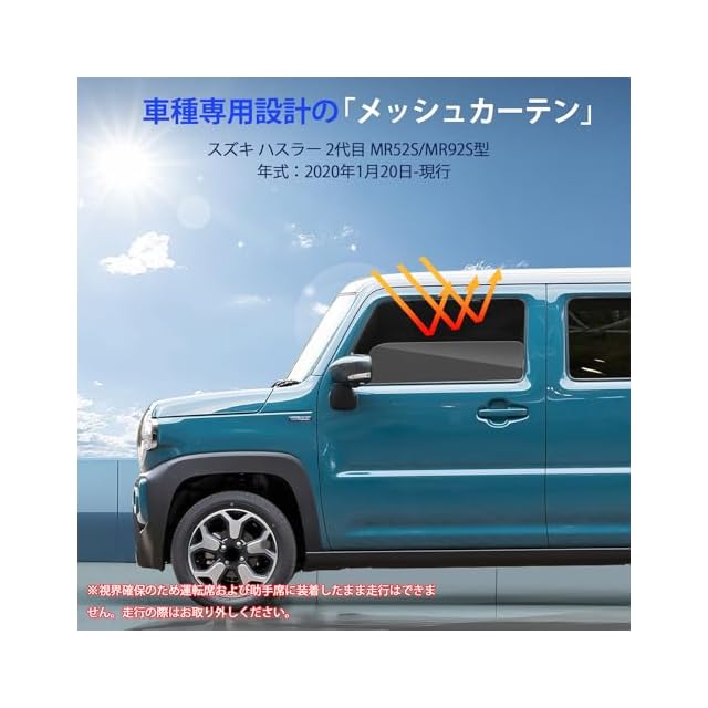 スズキ ハスラー MR52S/MR92S型 2代目 専用 メッシュカーテン 車種専用 サンシェード SUZUKI HUSTLER サイド用 遮光カーテン 遮光 日除け 日焼け防止 UVカット メッシュサンシェード マグネット式 日差し 虫よけ 通気 運転席 助手席 アクセサリー カスタム パーツ 2枚 日本語取扱説明書付き