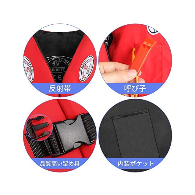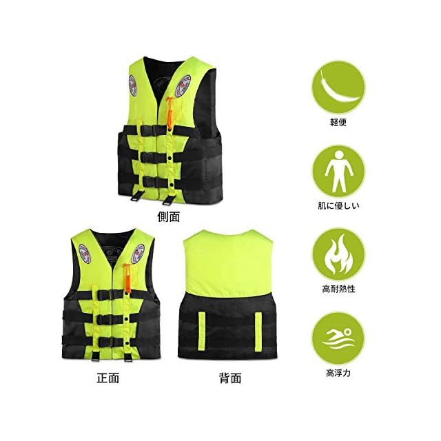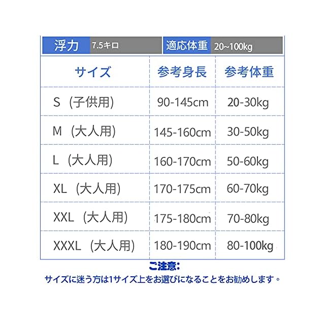 【4色で6サイズ、安全性を向上させ】 青、黄色い、赤とオレンジで4色、S~XXXLまで6サイズ用意しており、30KGな子供より100KGな大人までも対応できます。反射帯付きなので、鮮明的な色を採用して浜辺などの人込みでもひときわ目立ち、姿を見失っても「あそこにいる!」って見つけやすいです。泳ぐことに邪魔にならずに確実に浮力を確保できるデザインです。