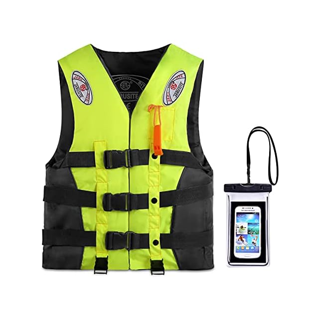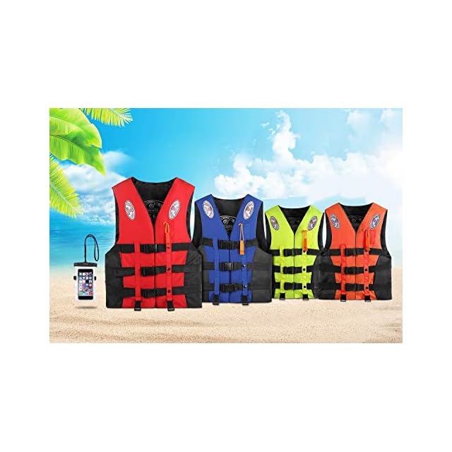 Reedark ライフジャケット 釣り スマホ防水ケース+らいふじゃけっと 呼び子付き 救命胴衣 子供用 大人用 男女兼用 川遊び ボート 海水浴 国交省認定品と同等浮力 4色&6サイズ 蛍光色,XXL(大人用 70~80kg)