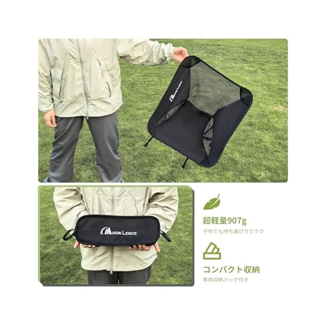 MOON LENCE アウトドア チェア キャンプ 椅子 折りたたみ コンパクト 超軽量907g イス 収納バッグ付き ハイキング お釣り 登山 耐荷重150kg (カーキ-2個セット) | Trend Design BASE店