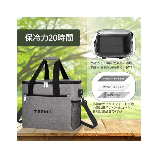 【高品質素材】TEEMOO 保冷バッグの外層はオックスフォード生地、内層はパールコットンを厚くし、高品質のPEVAを内蔵し、外部からの熱を効果的に遮断し、内部の温度を長時間低く保ちます。アイスパック4~6個と一緒に使えば、10~20時間保冷できます。防水性があり、溶けても漏れません。丈夫で耐久性があります。