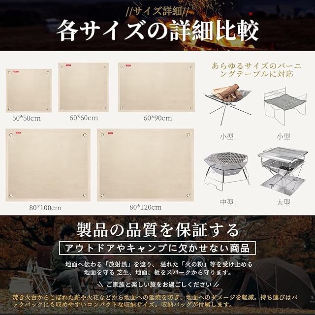 【より多くの選択】不燃布マット板縫い目がしっかりしている,大きい、小さい全部あります。焚火シート、炊き火シート、防火シート、焚き木シートなど下敷きいずれも使えます。しかも折り畳みと携帯に便利です。