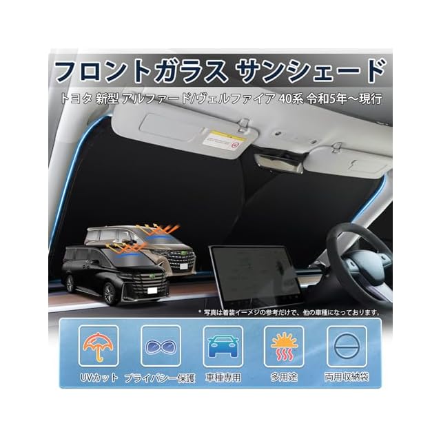 LIMSTYLE トヨタ アルファード ヴェルファイア 40系 フロントガラス用 サンシェード ALPHARD VELLFIRE 40 マルチサンシェード 遮光 断熱 シェード カーテン R5.6~現行 日除け UVカット 車中泊 しなやか スポーティ タイプ ドット柄 収納袋付 アクセサリー 内装パーツ 車種専用 取付簡単 メーカー直営 | Trend Design BASE店