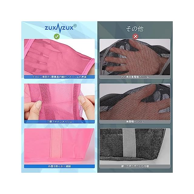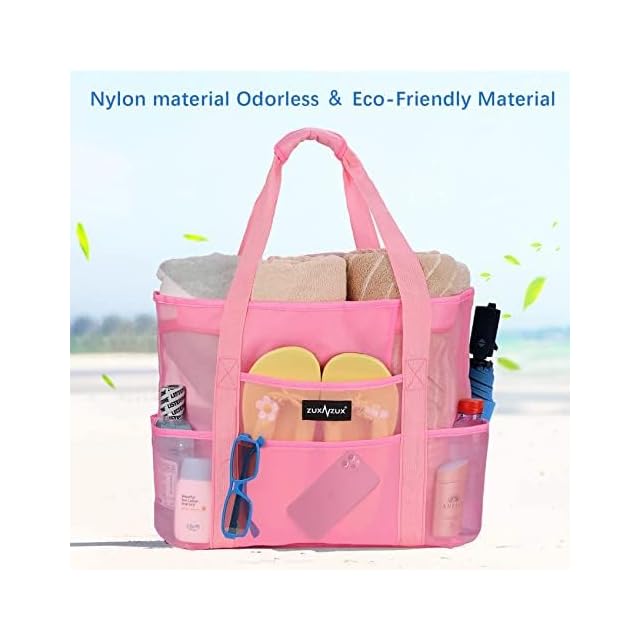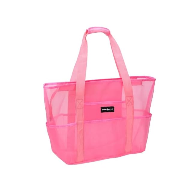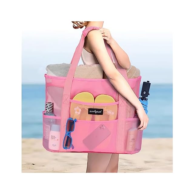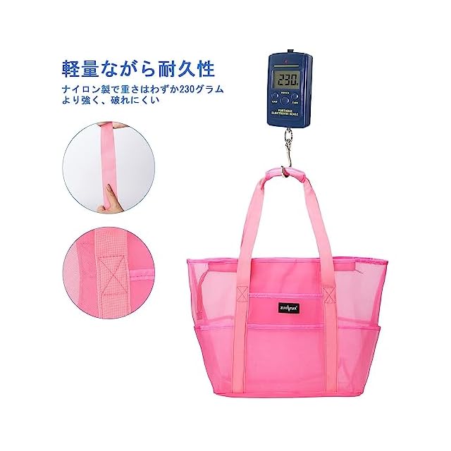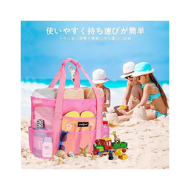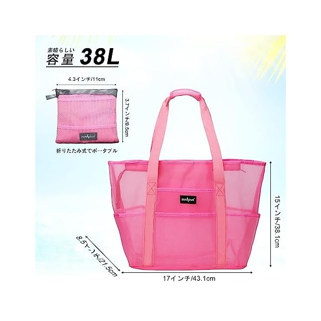 [ZUXNZUX] ビーチバッグ プールバッグ 軽量 38L 大容量 速乾 自立式 折り畳み可能 メッシュバッグ ビーチ/ショッピング/水泳/ジム/スパ/温泉/旅行用 バッグ (ピンク) | Trend Design BASE店