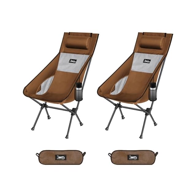 DesertFox アウトドアチェア 折りたたみ 枕付き 超軽量 【2個セット】【独自開発のカップホルダー】 耐荷重150kg キャンプ椅子 コンパクト イス ハイバック 椅子 収納袋付属 携帯便利 お釣り 登山 2066 (コーヒー) | Trend Design BASE店