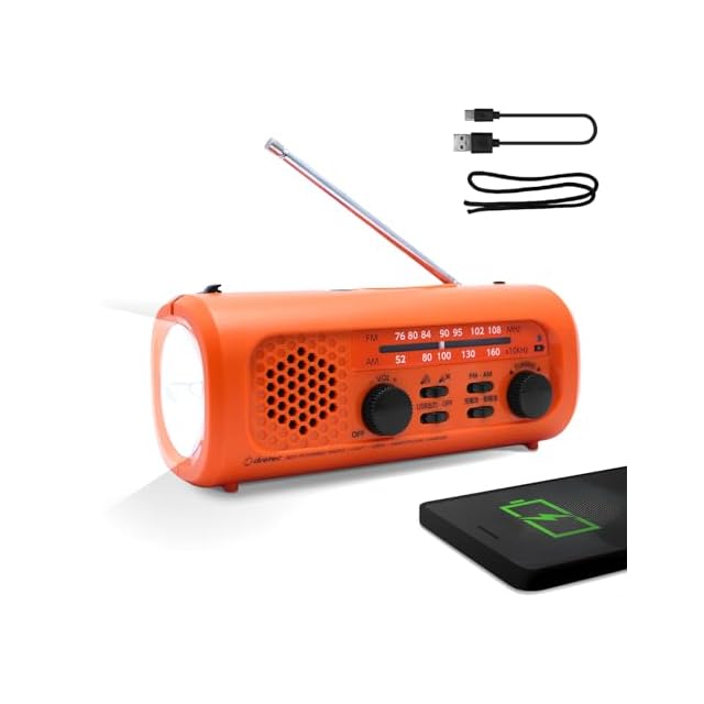 ドリテック(dretec) 10年保管できる防災ラジオライト 防災グッズ スマホ充電可能 単三電池・手回し充電・USB充電3way電源 type-Cケーブル付属 AM/FM/ワイドFM対応 災害用 非常用 多機能 白色LED・サイレン・吊り下げ紐持ち運び オレンジ | Trend Design BASE店