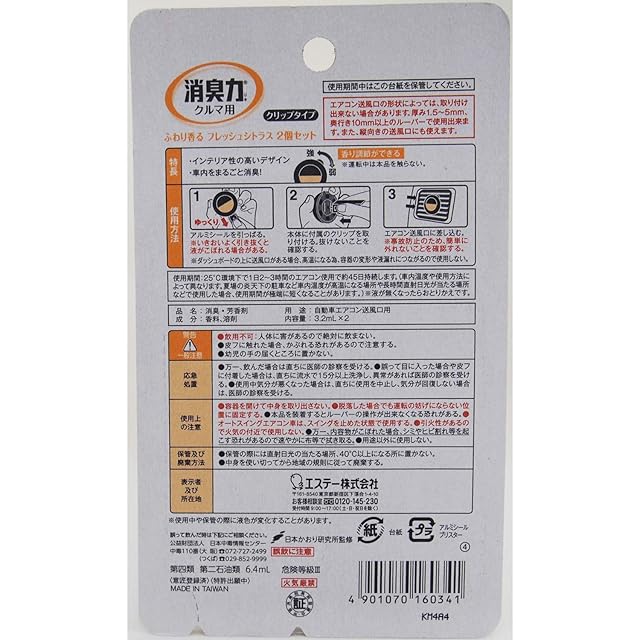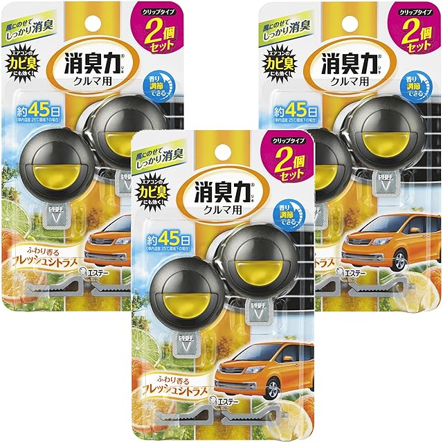 消臭力 クルマ [まとめ買い] 車用 クリップタイプ フレッシュシトラス 3.2mL×6個セット(2個入×3) クルマの消臭力 車 クリップ 消臭剤 消臭 芳香剤 | Trend Design BASE店