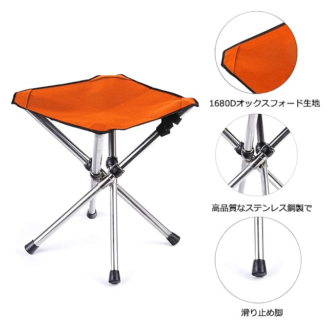 【頑固・安定性抜群】当店の折りたたみ椅子は高品質なステンレス鋼製で、丈夫さをします。4本フレームが建築にも使用されるステンレス鋼素材を採用されることで、強度が高く、摩耗しにくい、耐食性が良いです。静止した状態において耐荷重100KGです。本アウトドアチェアは脚4本がしっかり連結して安定性が通常品の2倍です。