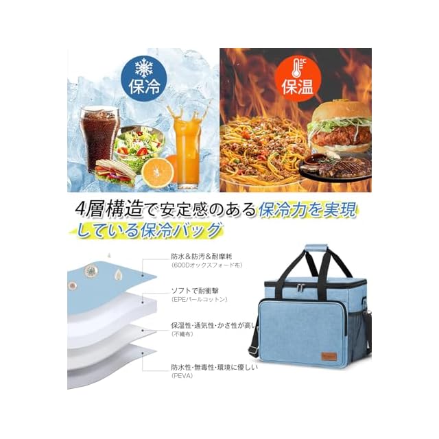 ✅【3WAY仕様・コンパクトに収納可能なクーラーバッグ】荷物の量に合わせて手持ち・肩がけ・二人持ち3タイプから持ち方を選べる3way仕様。付属したショルダーストラップは取り外しや調整が可能になっていて、さらにショルダーパッドも付いたことにより、ショルダーストラップの食い込みを軽減、肩からのずれ落ちを防げます。✅また、固い素材で作られたハードクーラーボックスとは違い、使わないときにはコンパクトに折りたためるので、収納場所に困らなくちょっとした隙間に入れて保管が出来ます。ハードタイプのクーラーボックスより軽くてかさばらないので持ち運びやすいです。