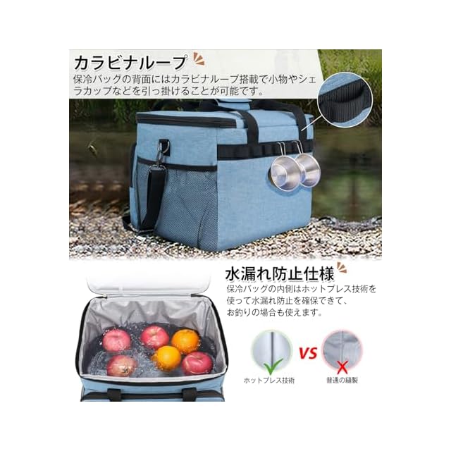 ✅【魅力的な機能がいっぱいのソフトクーラー】ソフトクーラーの背面にはイーチェーン(輪っか状になったナイロンベルト)が配置したの、シェラカップの柄を引っ掛けたり、カラナ等を接続して小型ライトなどの小物類をら下る事も可能す。✅また、ソフトクーラーの内側は継ぎ目のないホットプレス技術を採用したことで、より優れた漏れ防止効果を実現し、氷が水に溶けた後バッグから水が染み出す心配がなくなり、釣りなどの場合も問題なく使えます。