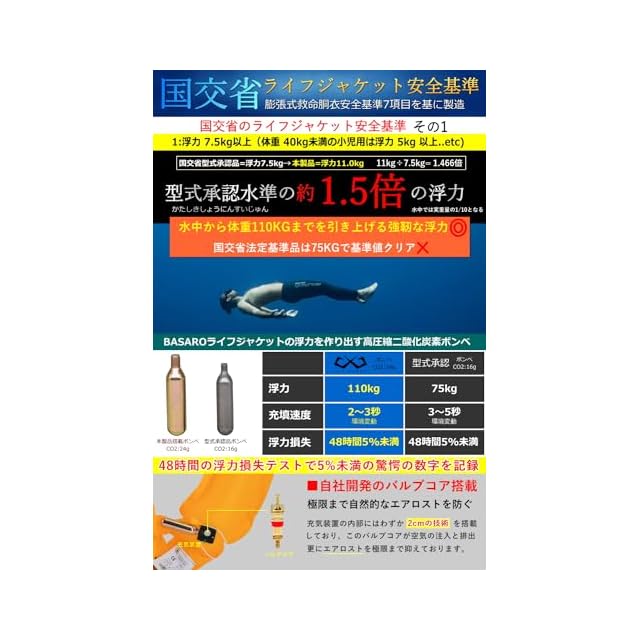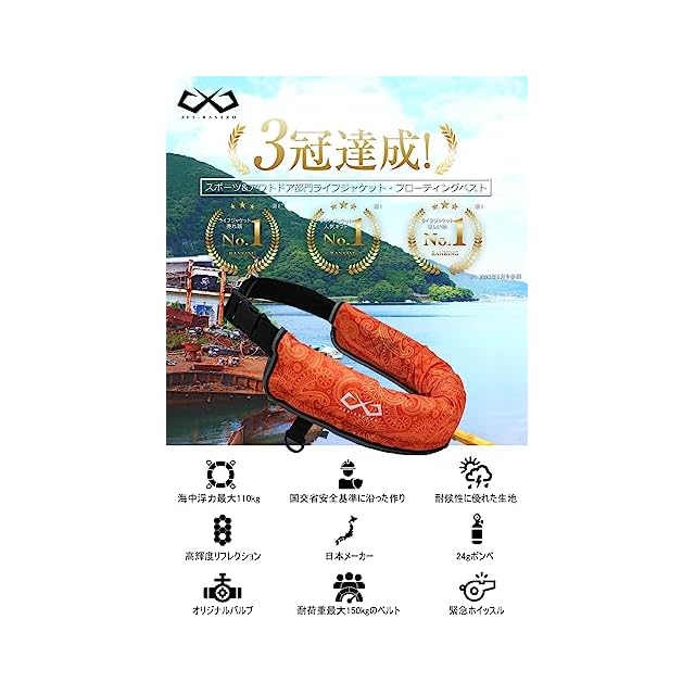 JES-BASARO (ジェスバサロ) ライフジャケット 手動膨張式 釣り 大人用 子供 腰巻き 腰 ベルトタイプ 日本国内メーカー B-Life-Jac-MN/AT 日本語取り扱い説明書 CO2高圧縮ボンベ付き (ペイズリーオレンジ) | Trend Design BASE店