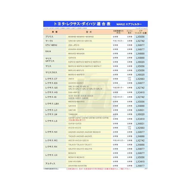クラウン レクサス LC LS エアフィルター エアクリーナー ARS220 ZSH20 AZSH21 GWS224 GWZ100 GVF50 GVF55 トヨタ用 マーレ LX4931 17801-31150 17801-31150-79 純正フィルターメーカー製 | Trend Design BASE店