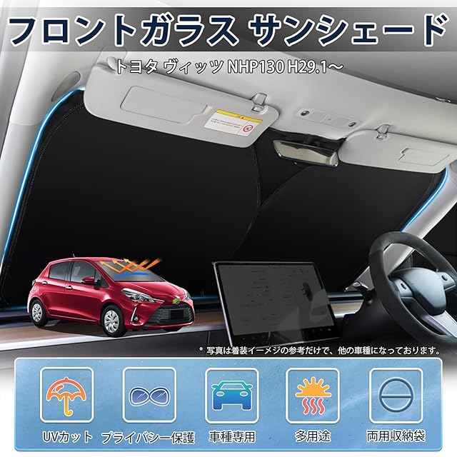 LIMSTYLE トヨタ ヴィッツ 130系 フロントガラス用 サンシェード VITZ 3代目マルチサンシェード ヴィッツ NHP130 遮光 断熱 シェード カーテン 2013年~2019年 日除け UVカット 車中泊 しなやか スポーティ タイプ ドット柄 収納袋付 アクセサリー 内装パーツ 車種専用 取付簡単 メーカー直営 | Trend Design BASE店