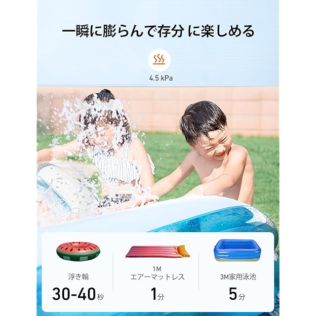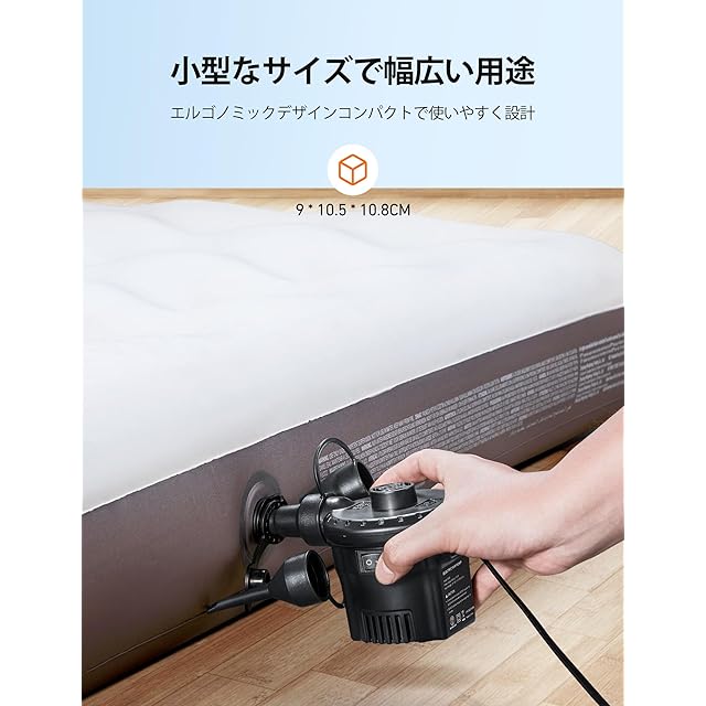【精巧な外形と簡単な操作】:プール 空気入れは新しい高強度ABSプラスチックの材料を採用されました。ユニークな形状がより良い体験を提供します。ON/OFFボタンのデザインは対象を充填したり、しぼませたりするのは便利で、操作するのに役立ちます。