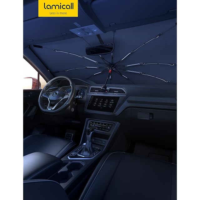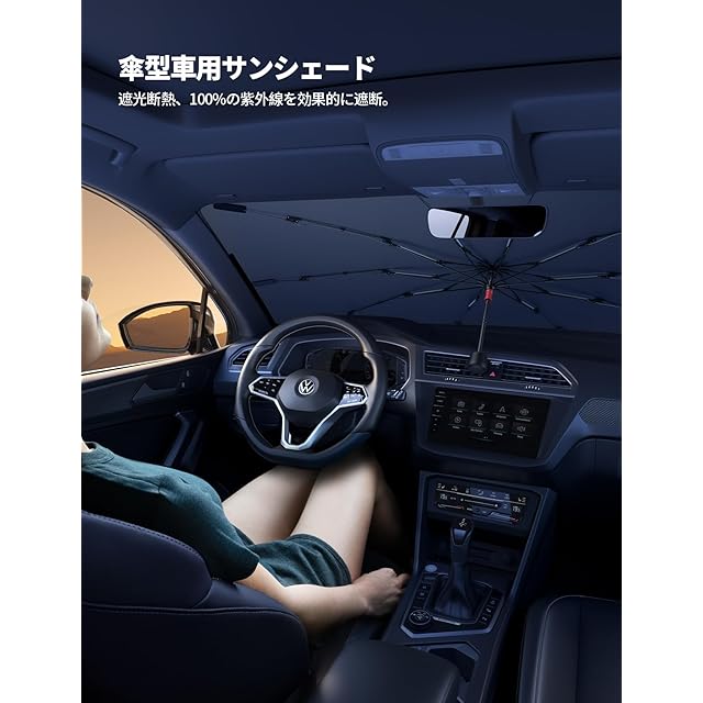 【曲がる可能な傘柄・ダッシュボードを守る】ユニークなデザインが採用されます。ダッシュボードの高低により、傘柄を折り曲げて調整できます。金属の傘柄がダッシュボードに触れないように、その摩擦からダッシュボードが守られます。また、ガラスと接触する四隅にプラスチックの保護カバーがあり、ガラスを傷つけませんのでご安心ください。