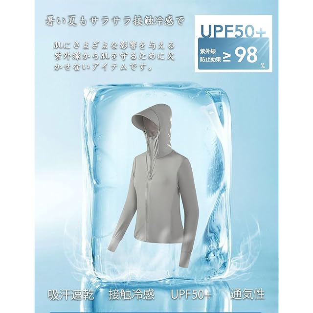 [CNYA] ラッシュガード レディース パーカー 水着 接触冷感 UPF50+ ラッシュパーカー 夏 吸汗速乾 長袖 フード付き 軽量 通気性 UVカット シンプル 大きいサイズ 日焼け防止 紫外線対策 無地 おしゃれ | Trend Design BASE店