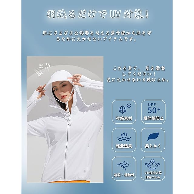 【日焼け対策はバッチリ】羽織るだけでUV対策!お肌に有害な紫外線を98%以上カット!最高レベルの紫外線防止効果UPF50+は、日焼けを防ぎます。様々なシーンで大活躍フード付きラッシュガード!肌にさまざまな影響を与える紫外線から肌を守るために欠かせないアイテムです。