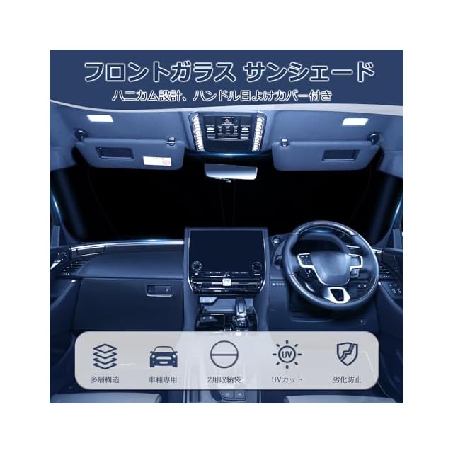 2.【ハニカム設計&高品質多層構造】:表面はハニカム設計で美的感覚とデザイン性が備えているだけでなく、見た目や質感もこだわり。生地は4層断熱、断熱保護を提供し、遮光効果が向上し、耐用年数を延ばす。1層目:ナノ反射層 、2層目:恒温吸熱層、 3層目:高品質高密度アルミ遮熱シート、4層目:ポリウレタン断熱素材。従来品よりも高い断熱効果あり、車内の温度上昇を抑制し、エアコンの効率を高めて省エネになる。