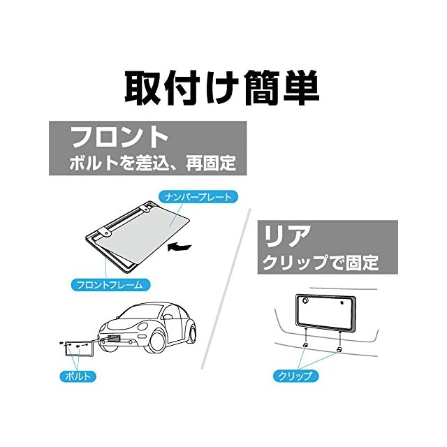 ドライカーボン調のシボを施したスポーティーイメージのナンバーフレーム前後セットです。