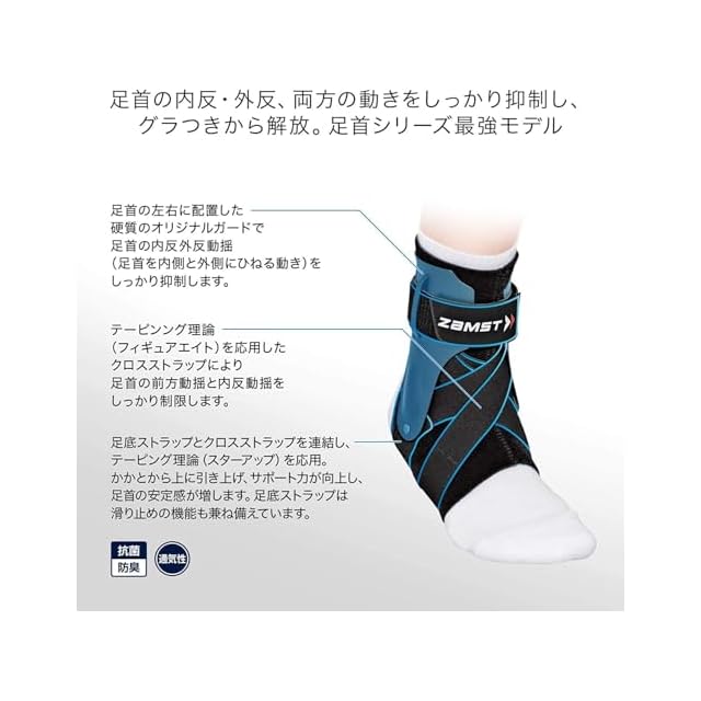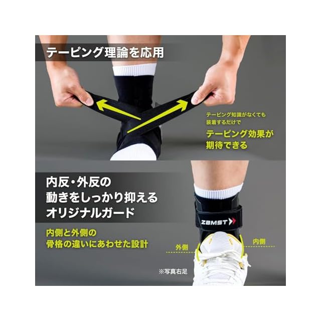 【内反・外反の動きをガード】左右両側のくるぶしの位置の違いに着目し、骨格に合わせて設計されたオリジナルガードを採用。内反・外反の動きをしっかりガードします。