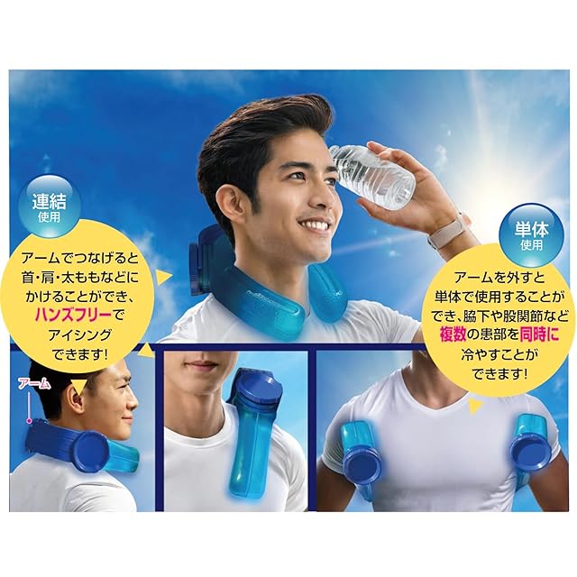 本体アーム部分を連結すれば首や肩部分をアイシング、アーム部分を分離すれば脇下、股関節などを同時にアイシング