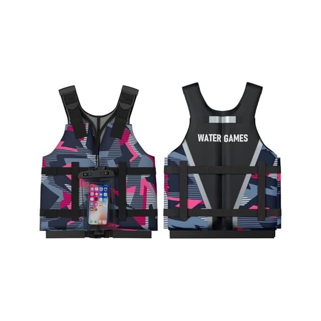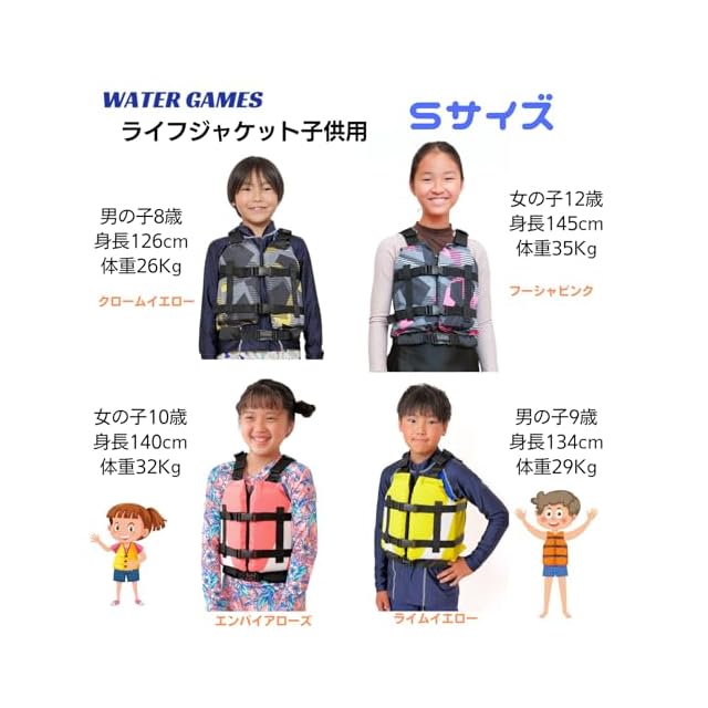 WATER GAMES ライフジャケット フローティングベスト シュノーケリングベスト 大人用 子供用 防水スマホケース 付き 日本国内メーカー 一般財団法人日本船舶品質管理協会 製品安全評価センター 浮力測定実施済 (子供用 Sサイズ(身長100~140cm)/ フーシャピンク)