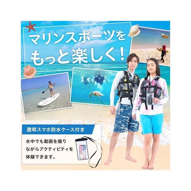 ✅【便利な防水ケース】付属の防水スマホケースで、大切なデバイスを水から守りながら、写真撮影や緊急時の連絡も可能に。内ポケットには小物を収納でき、手ぶらで海を楽しめます。