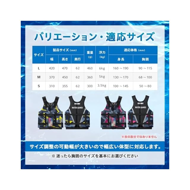 ✅【快適なフィット感】WATER GAMESのシュノーケリングベストは、体にぴったりとフィットし、スタイリッシュな見た目と快適な動きを実現。水中での自由な動きをサポートし、ウオータースポーツをより楽しいものにします。