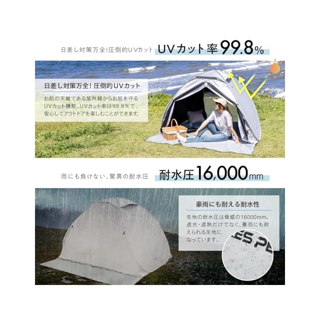 ✅【広げるだけのカンタン組立】 とことん使いやすさを追求し、テント組み立てに掛かる時間と煩わしい手順を大幅カット!専用ケースから取り出して手を放せば、5秒でぱっとテントが自動的に開きます。 また、簡易シートも本体と一体になっているのでわざわざレジャーシートなどを敷く必要がありません。