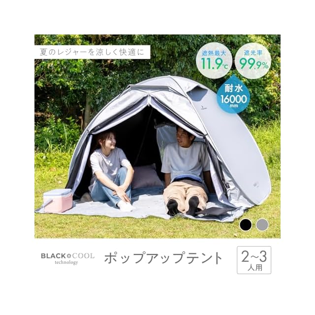 ✅【日光を遮る!圧倒的遮光率99.99%】真っ黒な遮光PUコーティング生地を採用することで、熱い日差しを遮ります。日照時間の長い、夏のレジャー時にもテント内に入れば涼しく快適に過ごすことができます。