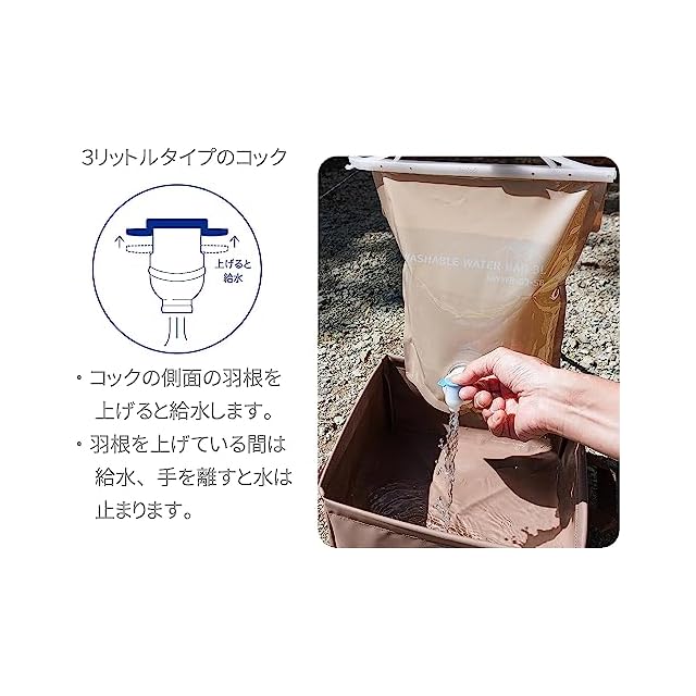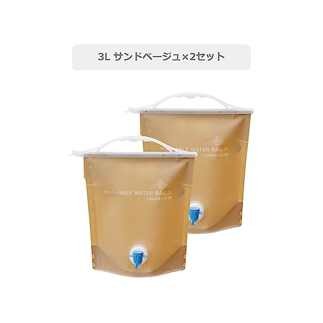 岩谷マテリアル(Iwatani Materials) 水タンク ウォッシャブルウォーターバッグ 3L 2個セット サンドベージュ WWB-3SB 注ぎやすいコック付き キャンプ レジャー 防災 約33×29×14cm | Trend Design BASE店