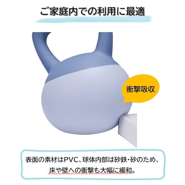 【やわらかい素材のケトルベル】ケトルベル魂ブランドの「やわらかい素材」のケトルベル。 衝撃を吸収する「やわらかい素材」のため、体にぶつけた際の衝撃も大幅に軽減されます。
