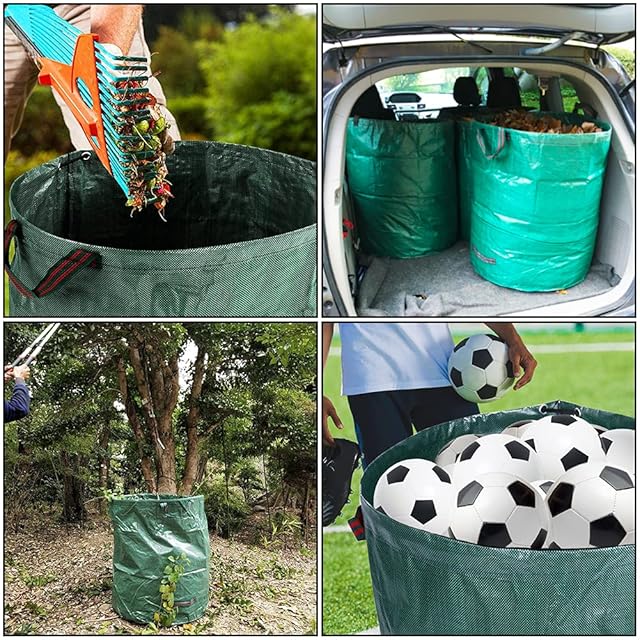 商品名:ガーデンバッグ <br> カラー: グリーン<br> 梱包内容:ガーデンバッグX3 ,最大容量(各袋)の272L - 高さ76cm直径66cm - バッグあたり50kgの最大重量<br> 素材: UV処理されたポリプロピレン製のターポリンから作られたガーデン廃棄バッグ,再利用可能な分解性材料で,耐久性、無公害、環境に優しい高品質な室内室外用収草袋です。<br> 多機能:このガーデンハンディバケツは多用途で、お庭周りの落ち葉、雑草、枝葉、腐った果物などの清掃作業用ゴミバッグとしても、お部屋での衣類等の収納バッグとしても利用していただけます。<br> 耐用:3枚入,最大800Lの庭廃棄物がぴったり収容され、ちゃんとご需要を満足できます。プラスチック製ゴミバッグと比べて、この大型庭用袋は酷い環境にも再利用可能で。<br> 使いやすさ:中身が空でもしっかり自立。上部開口部分は付属の芯を入れる事で形状が円形に固定され作業がしやすいです。上部に2箇所・下部に2箇所持ち手があり持ち運び・車の荷台に積んでの移動も便利。<br> メーカーの説明:一年保证付<br>
