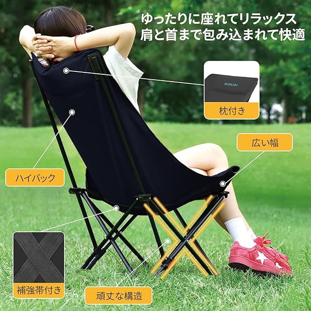 ALONJOY キャンプ用ラウンジャー リクライニング キャンプ 椅子 三段階調整 軽量 アウトドア チェア 折りたたみ椅子 お釣り 昼寝 居眠り 背もたれ高い 枕付き | Trend Design BASE店