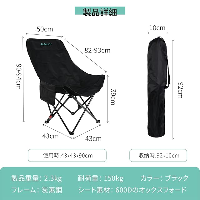【耐久性】 600Dのオックスフォード生地、破れにくい、通気性もあり、耐荷重は100㎏まで!