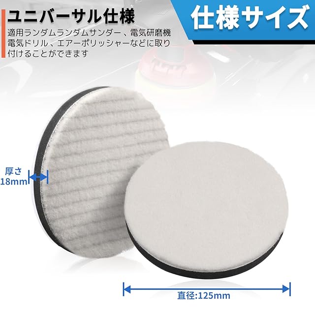 【ユニバーサル仕様】直径:125mm;厚み:18mmポリッシャー バフ、マジックテープ式なので取り付けが非常に便利です-適用ランダムランダムサンダー、電気研磨機、電気ドリル、エアーポリッシャーなどに取り付けることができます
