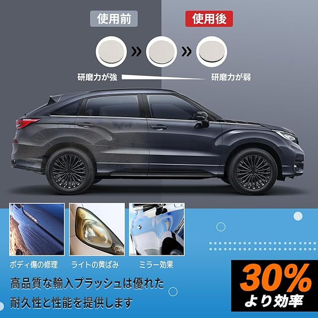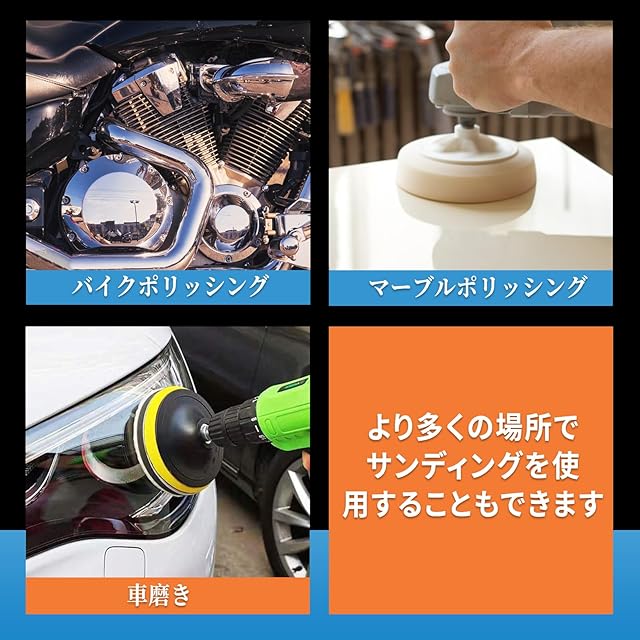 【幅広い使用用途】曲面研磨アダプターを使用したバッキングパッド、凹凸のある面を研磨できる-したがって車のボディーの研磨やヘッドライトの黄ばみ取りなどに最適です、洗車、ヘッドライトの曇り取り、ポーセレンの研磨、ワックスがけ、コンパウンドがけ、風呂掃除など、さまざまな用途に使用できます