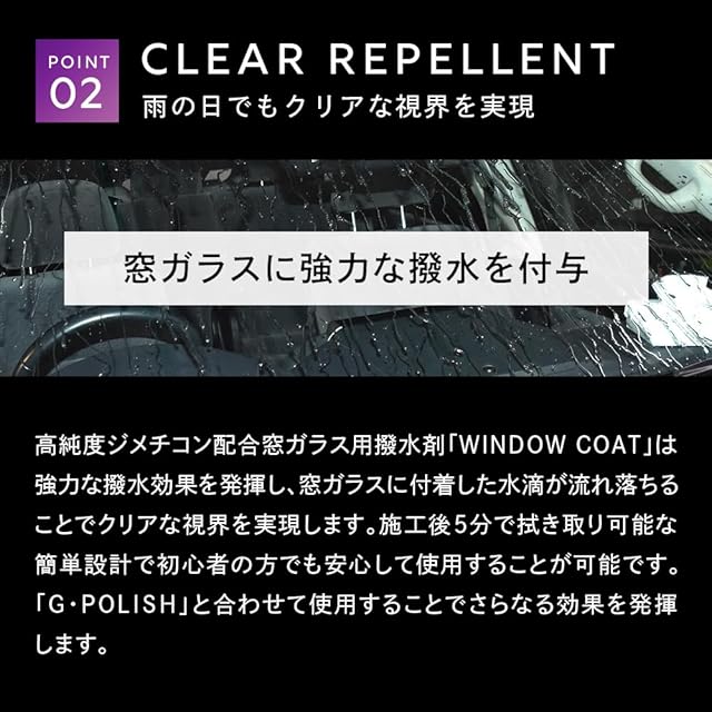 高純度ジメチコン配合窓ガラス用撥水剤「WINDOW COAT」