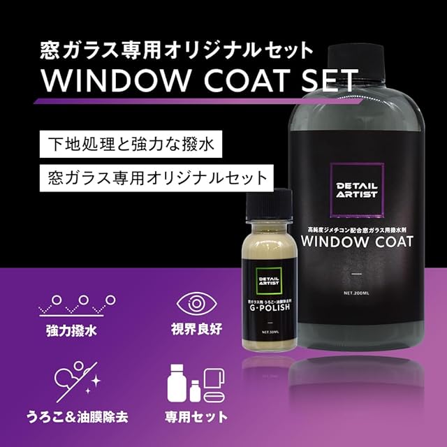 商品名:【DETAILARTIST】WINDOWSET『高純度ジメチコン配合窓ガラス用撥水剤』ガラス撥水剤 窓ガラス 撥水 200ml 高耐久 洗車 ディテールアーティスト