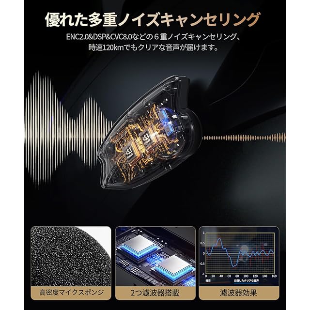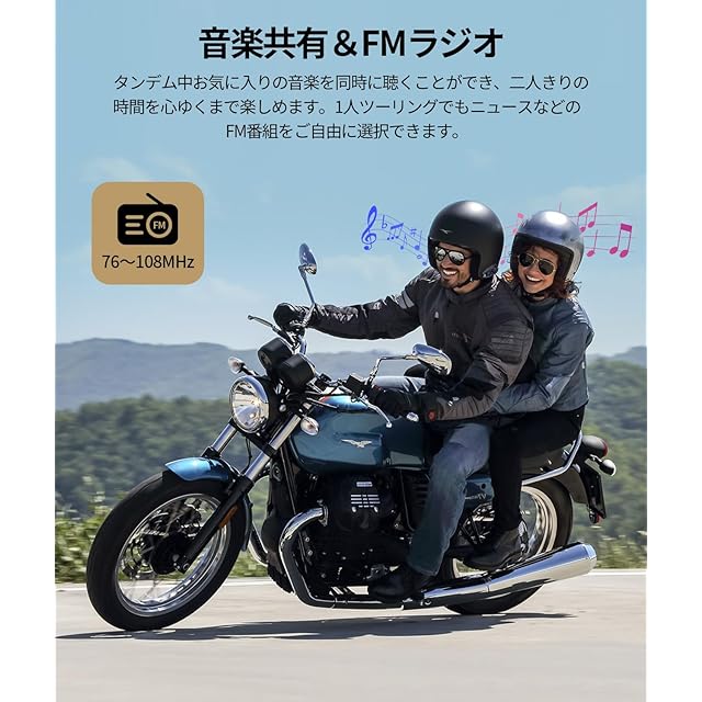 ✅【音楽ながら通話&音楽共有・3ソフト+3ハードウェアノイズキャンセル】2枚Qualcommチップのおかげで、音楽、スマホ地図ナビアプリなどが再生中、同時にインカム通話対応なので、頻繁の操作を省き、ライディングに専念できます。音楽共有機能あり、恋人、夫婦、友人とか2人のライダーが走行中に同じ音楽を楽しむことができます。最新のENC2.0、DSPとCVC8.0三重騒音抑制技術を導入、2つ濾波器(ノイズフィルタ)と高密度マイクスポンジも備え、バイク用インカムのマイクが環境騒音を収集して対等の逆音波で騒音を抑制し、街の喧噪、通話エコー、風切り音やエンジンなどノイズを約90%以上除去できます。相手からの声や携帯電話からの音楽などが鮮明に聞こえ、この上クリアな音声を相手に伝えます。(※音楽共有距離は10M)