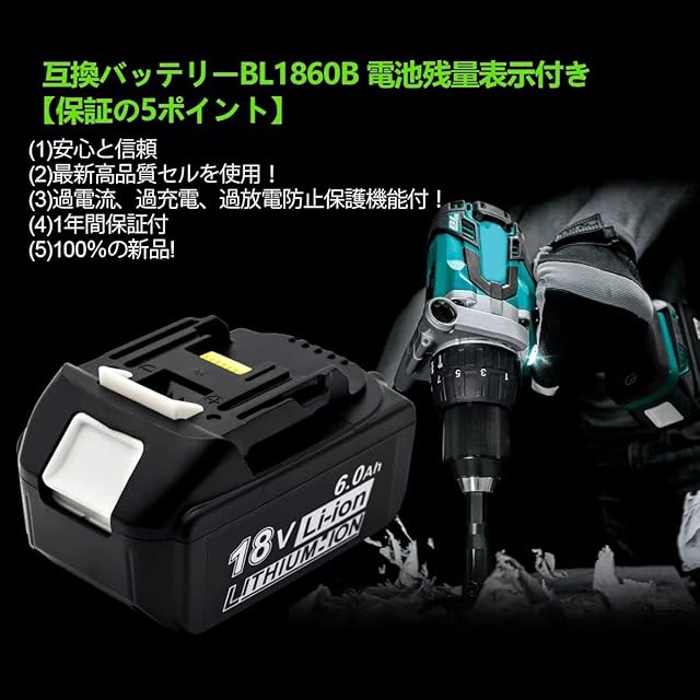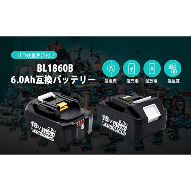 幅広く使われる: マキタバッテリー18v BL1860B 対応の機種:BL1860B、BL1850、BL1840、BL1830、BL1830B、BL1820B、BL1815、BL1815N など。このBL1860互換バッテリーはたっぶり6.0Ah 超高容量入っており、頻繁に充電する必要ないです。